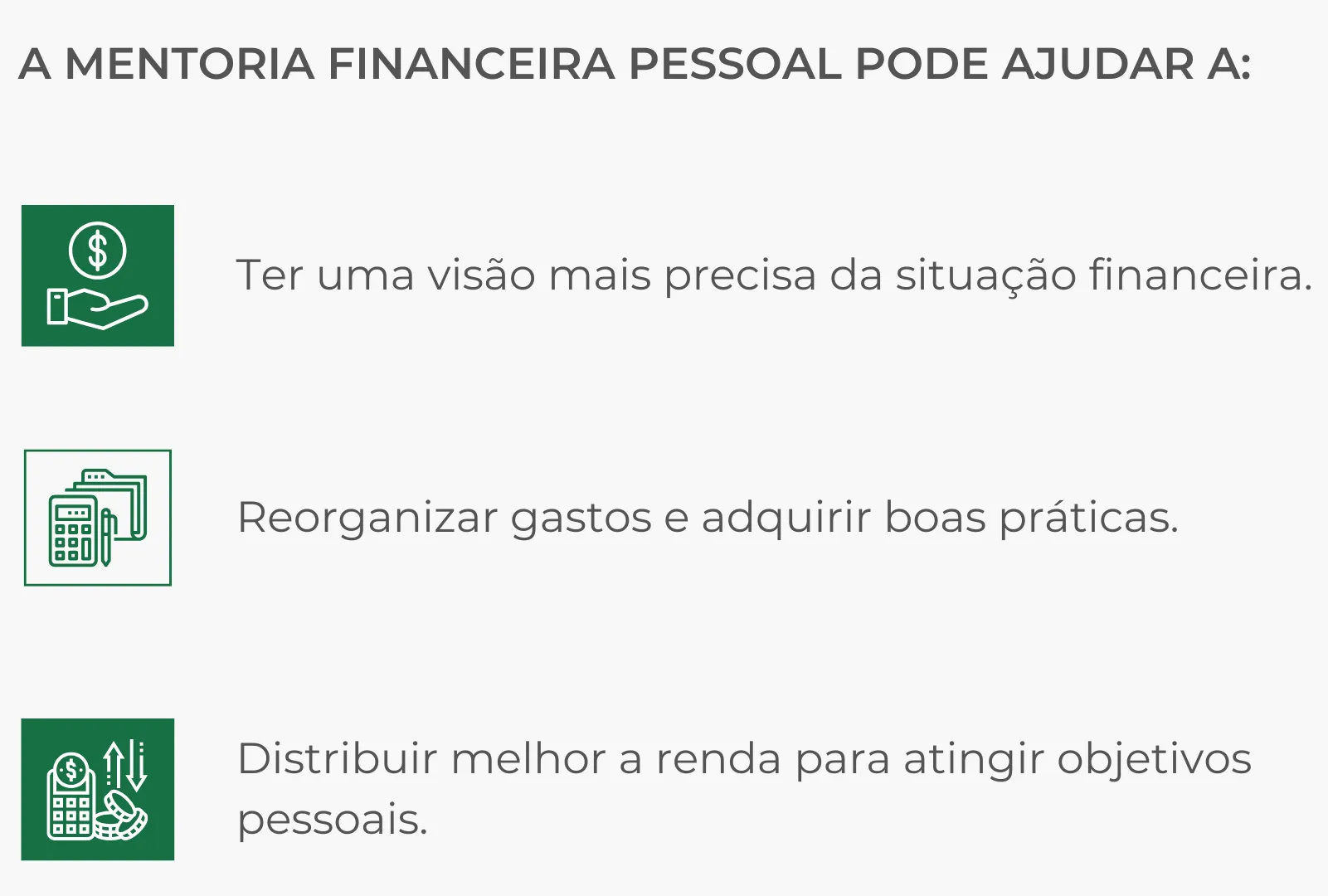 A mentoria financeira pessoal é uma relação de orientação e apoio por um profissional especializado que lhe ajudará a lidar com finanças e situações relacionadas a elas. O mentor tem experiência no mercado e pode ajudar a resolver questões que estão atrasando o crescimento financeiro.